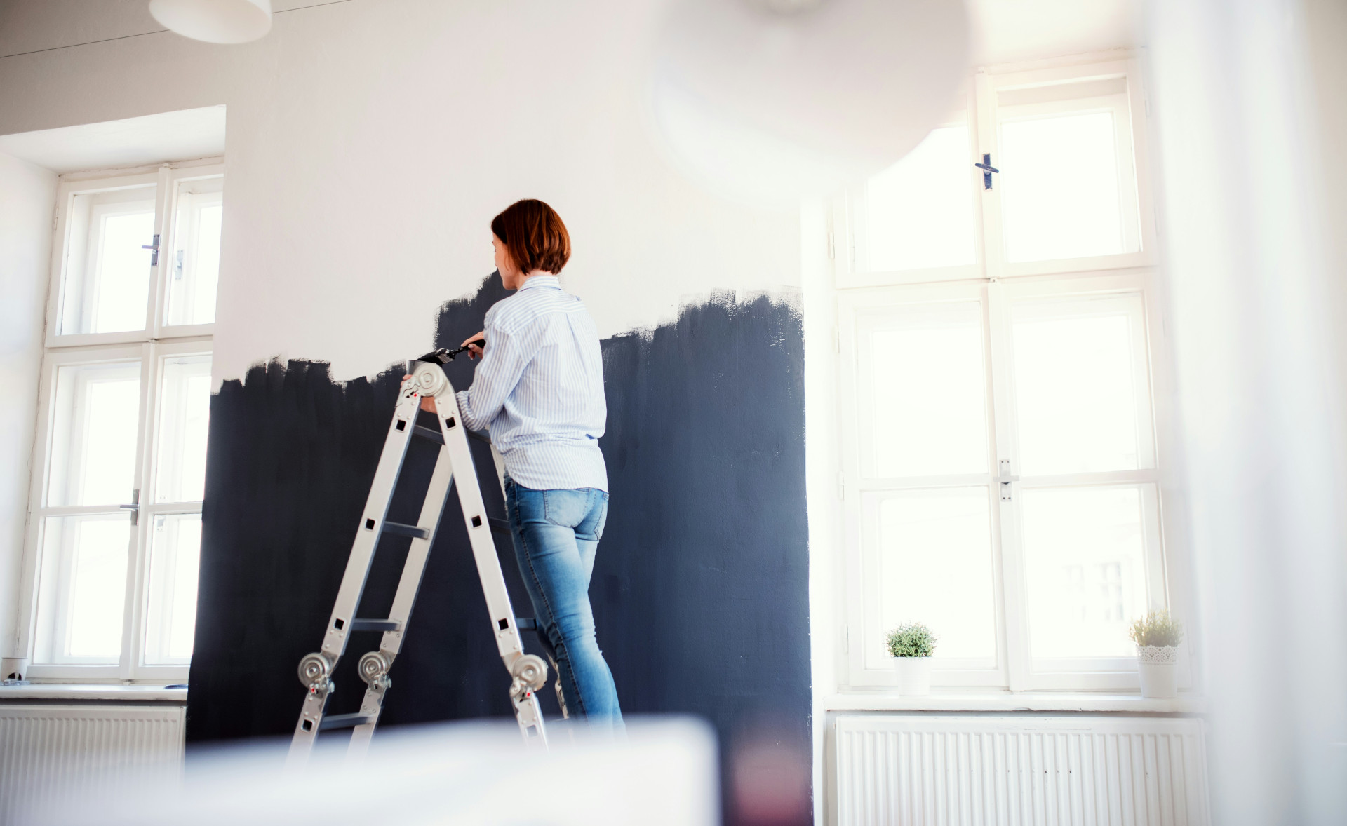 Når grunderen er tør, kan du male med en diffusionsåben vægmaling, som lader væggen ånde. I rum med høj luftfugtighed – som badeværelser – bør du vælge en maling, der tåler fugt og kan vaskes af.